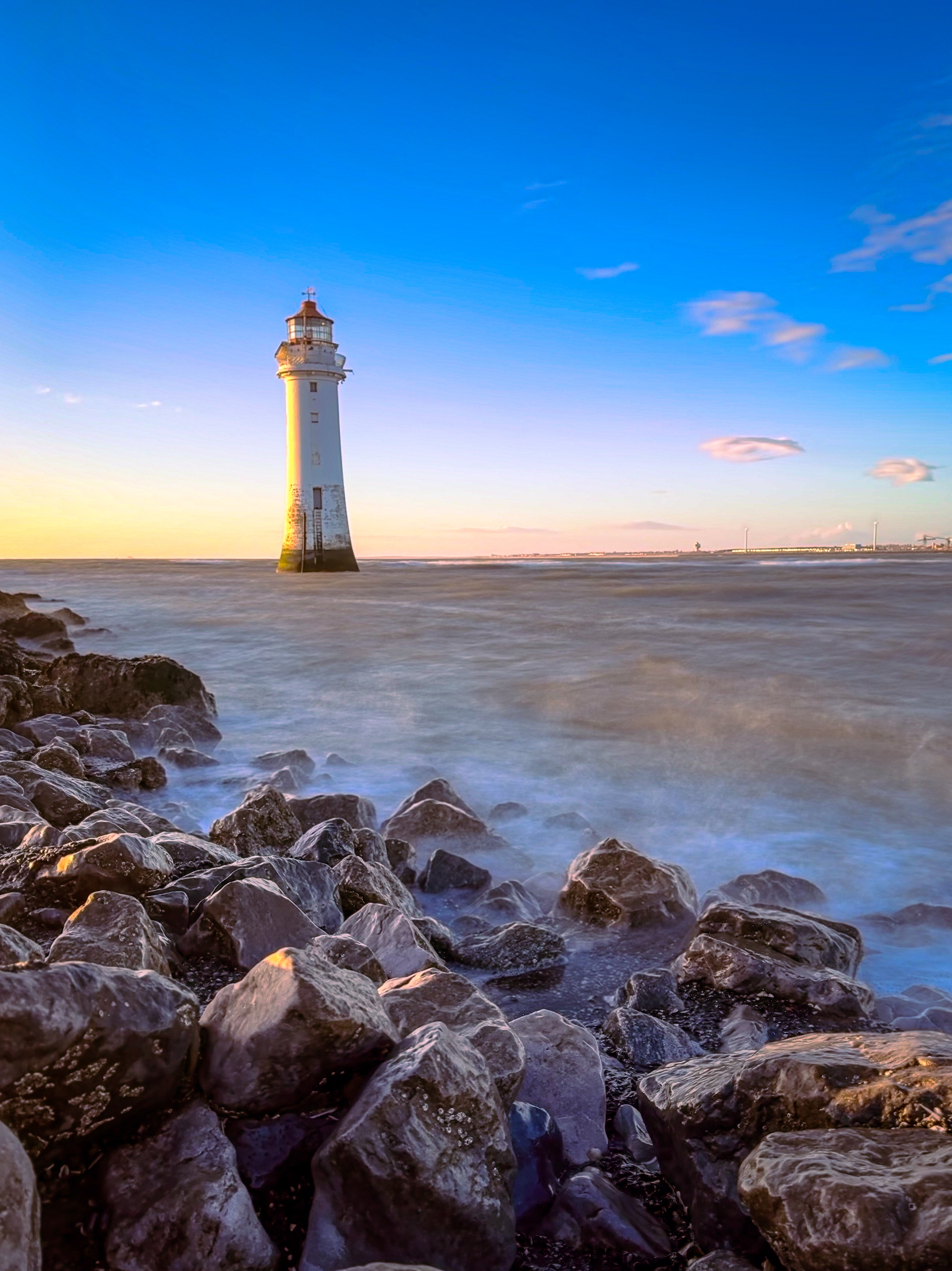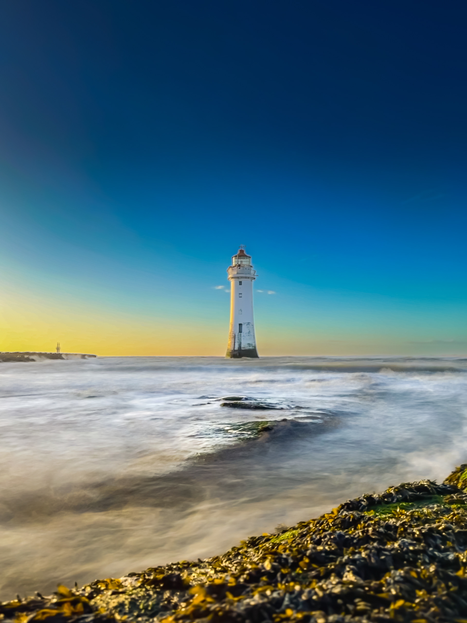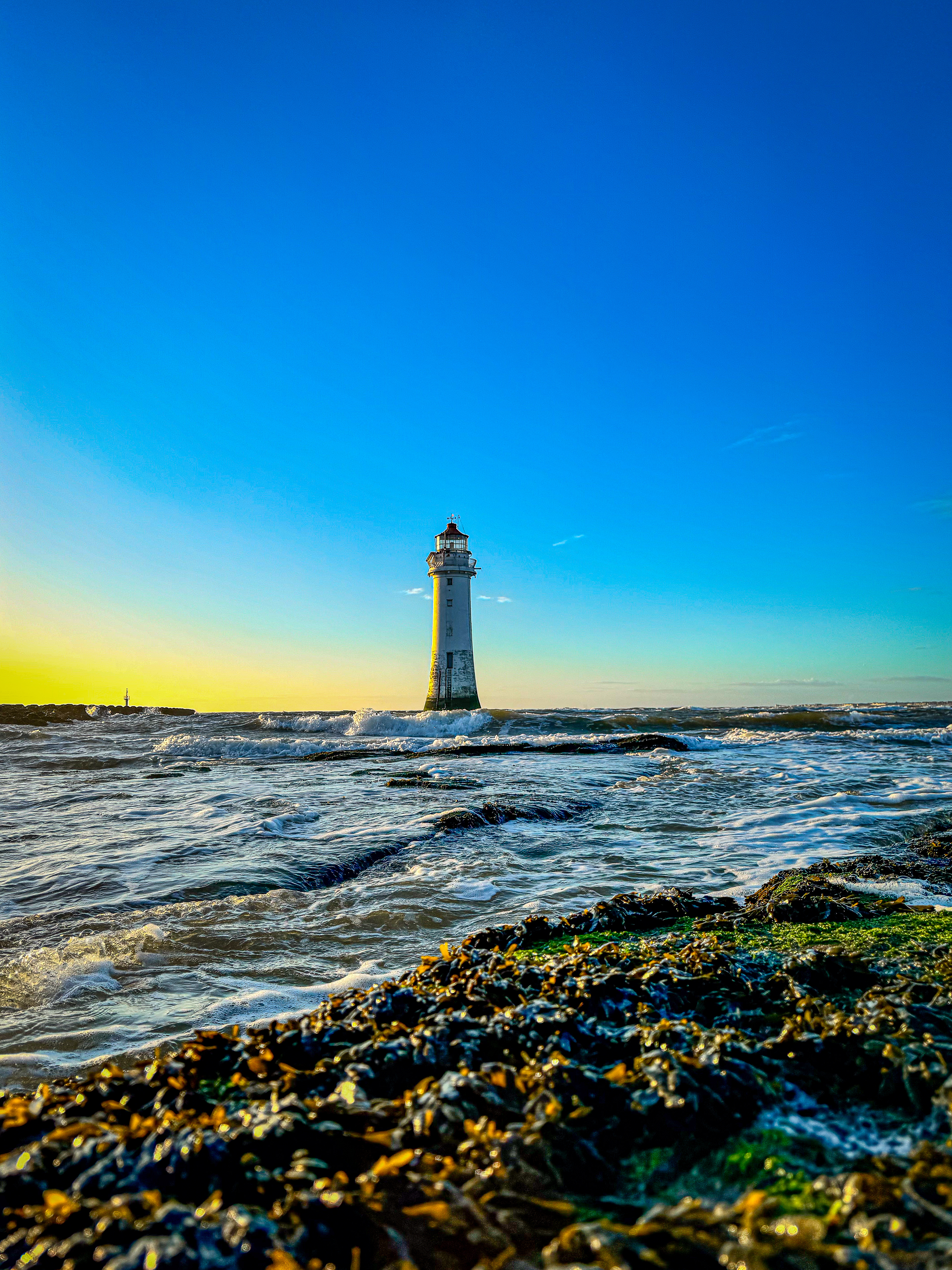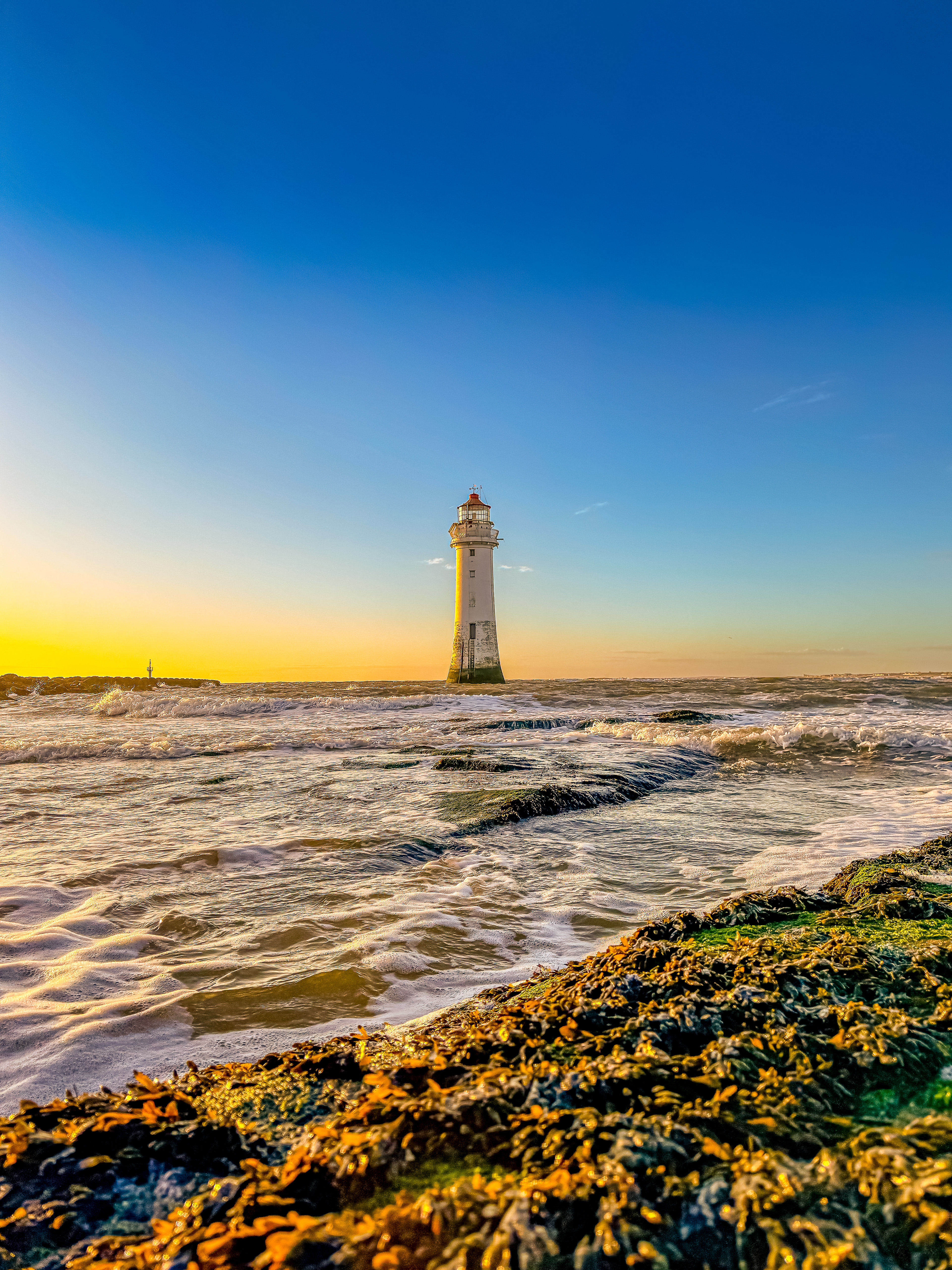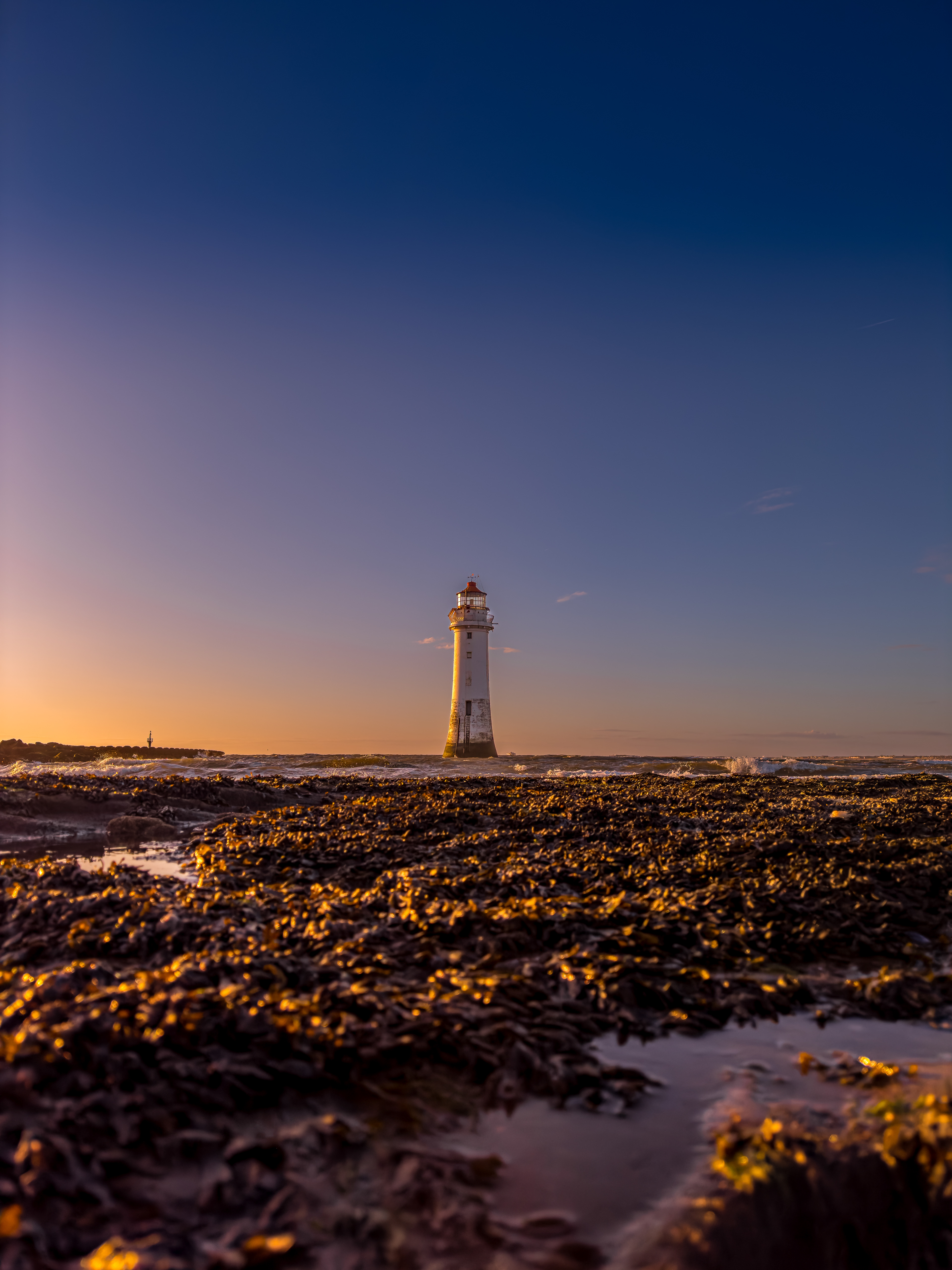 A walk to New Brighton Lighthouse, Wirral at Sunset.