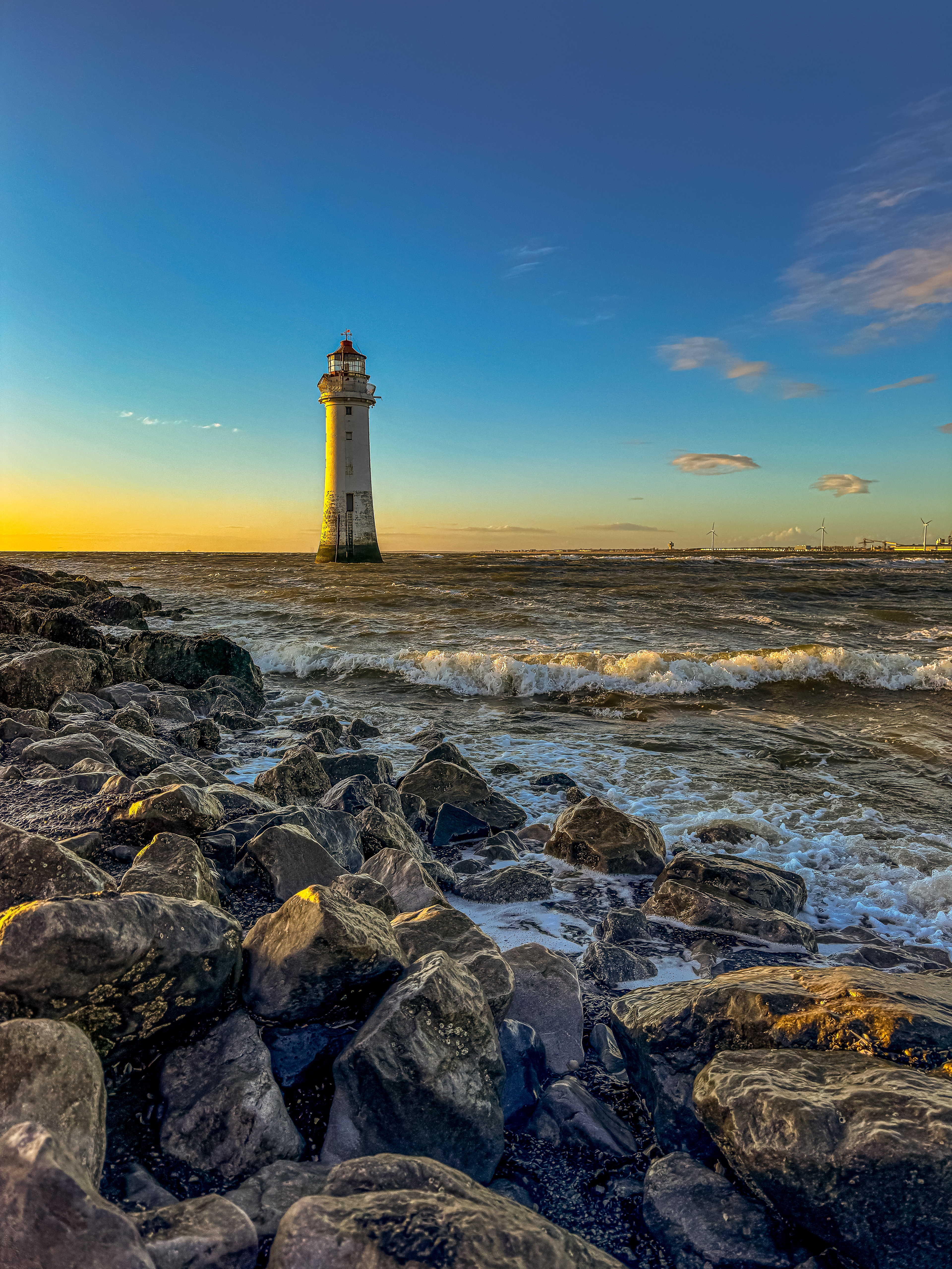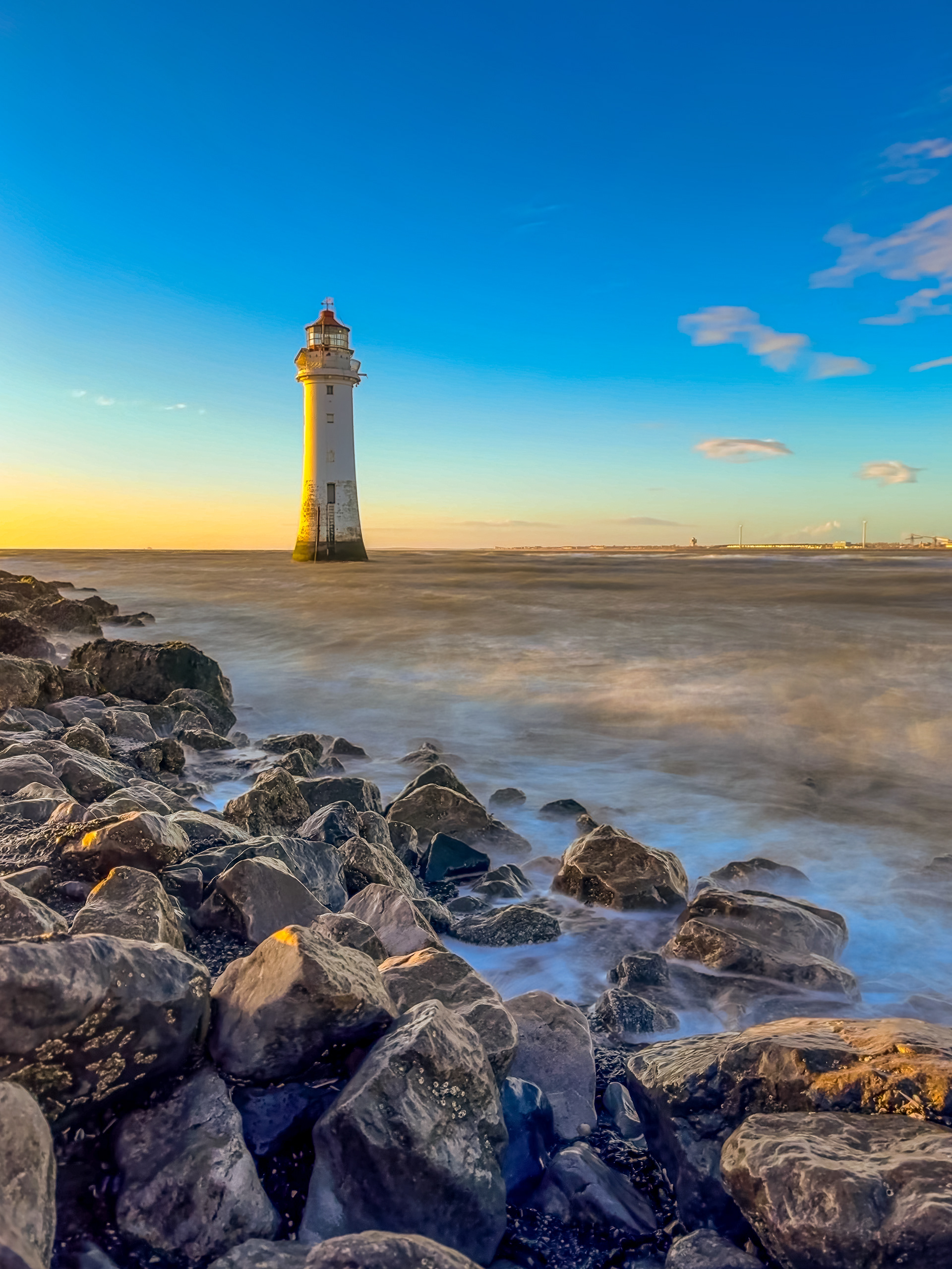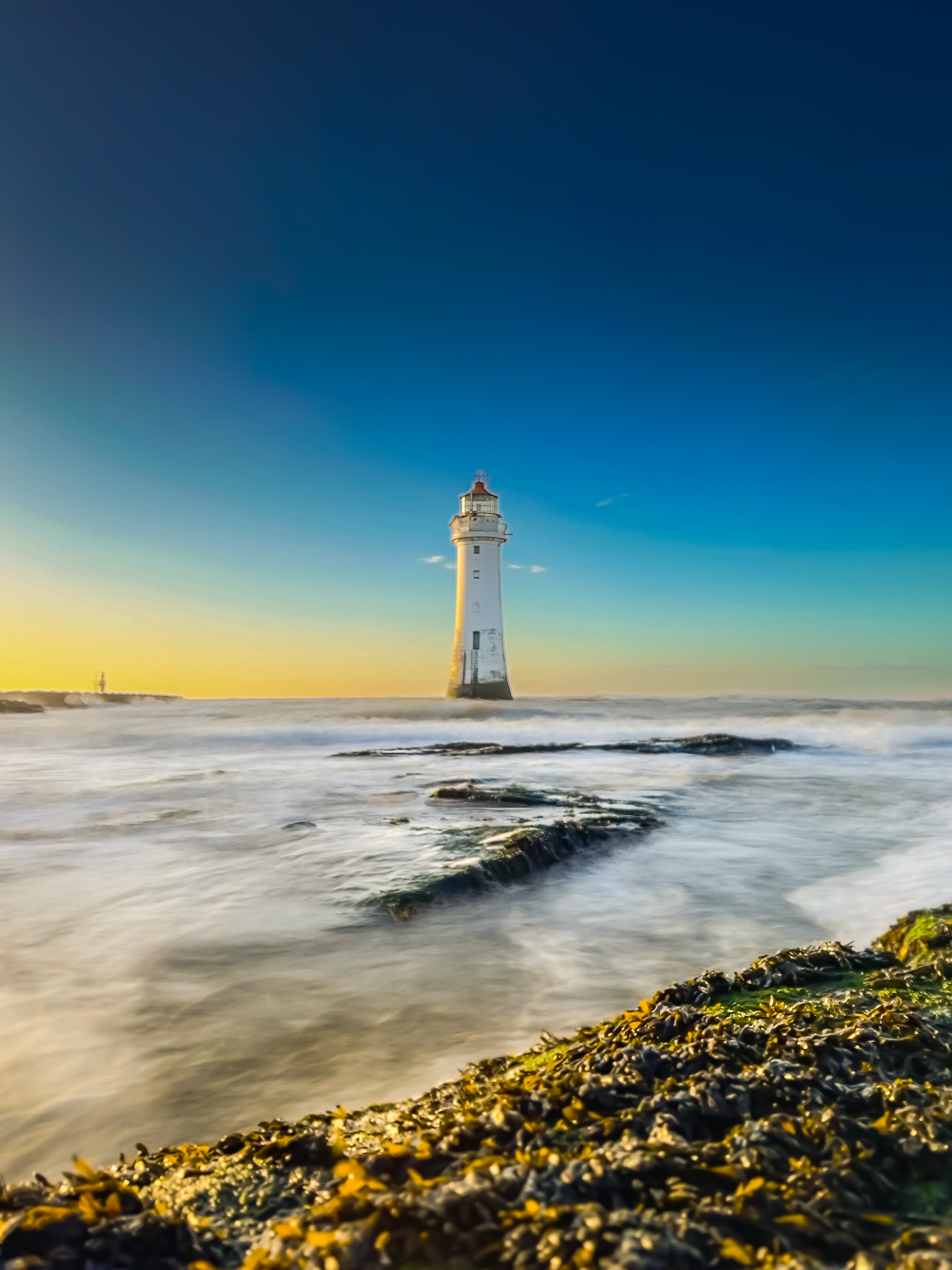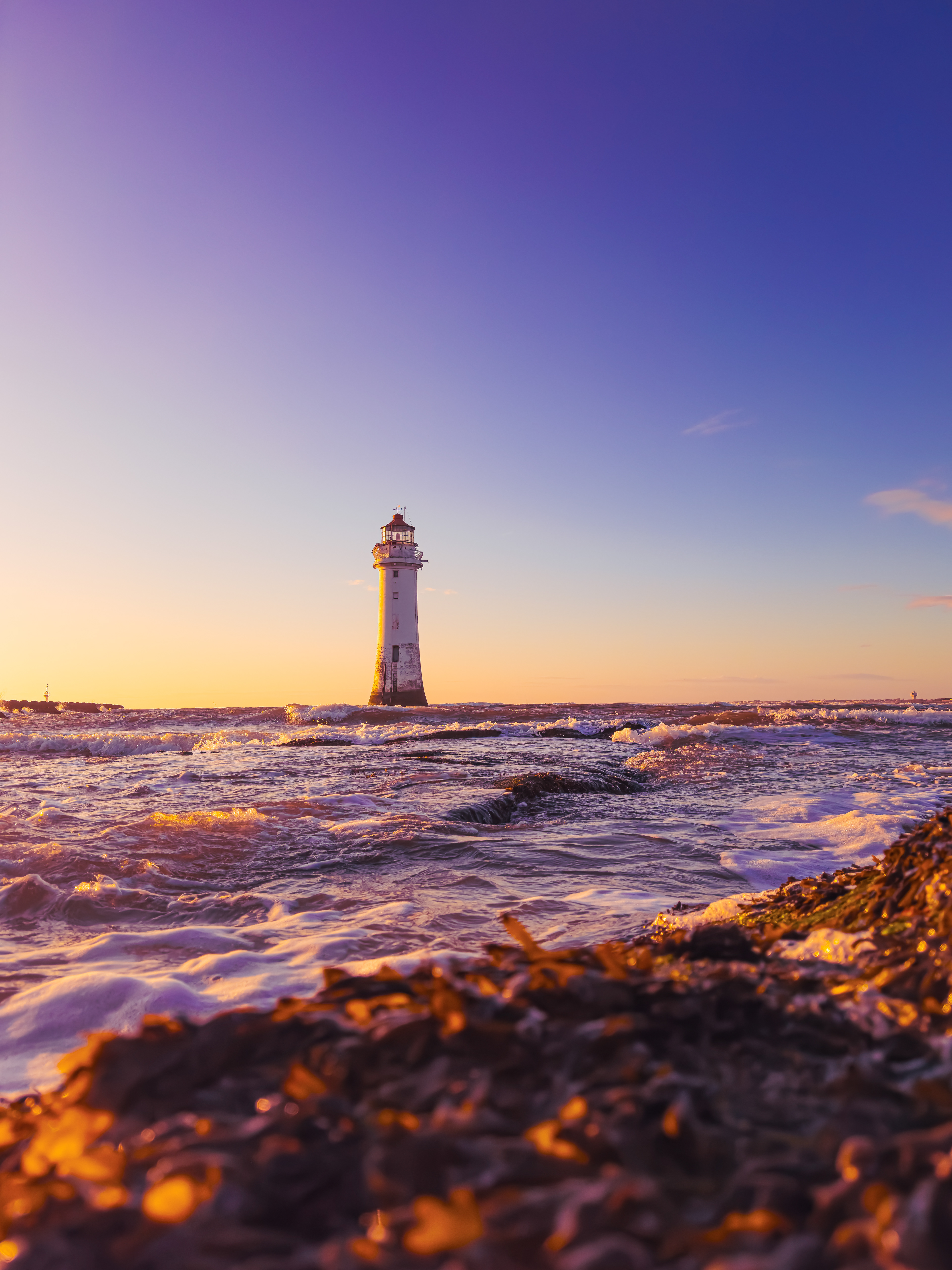 A walk to New Brighton Lighthouse, Wirral at Sunset.