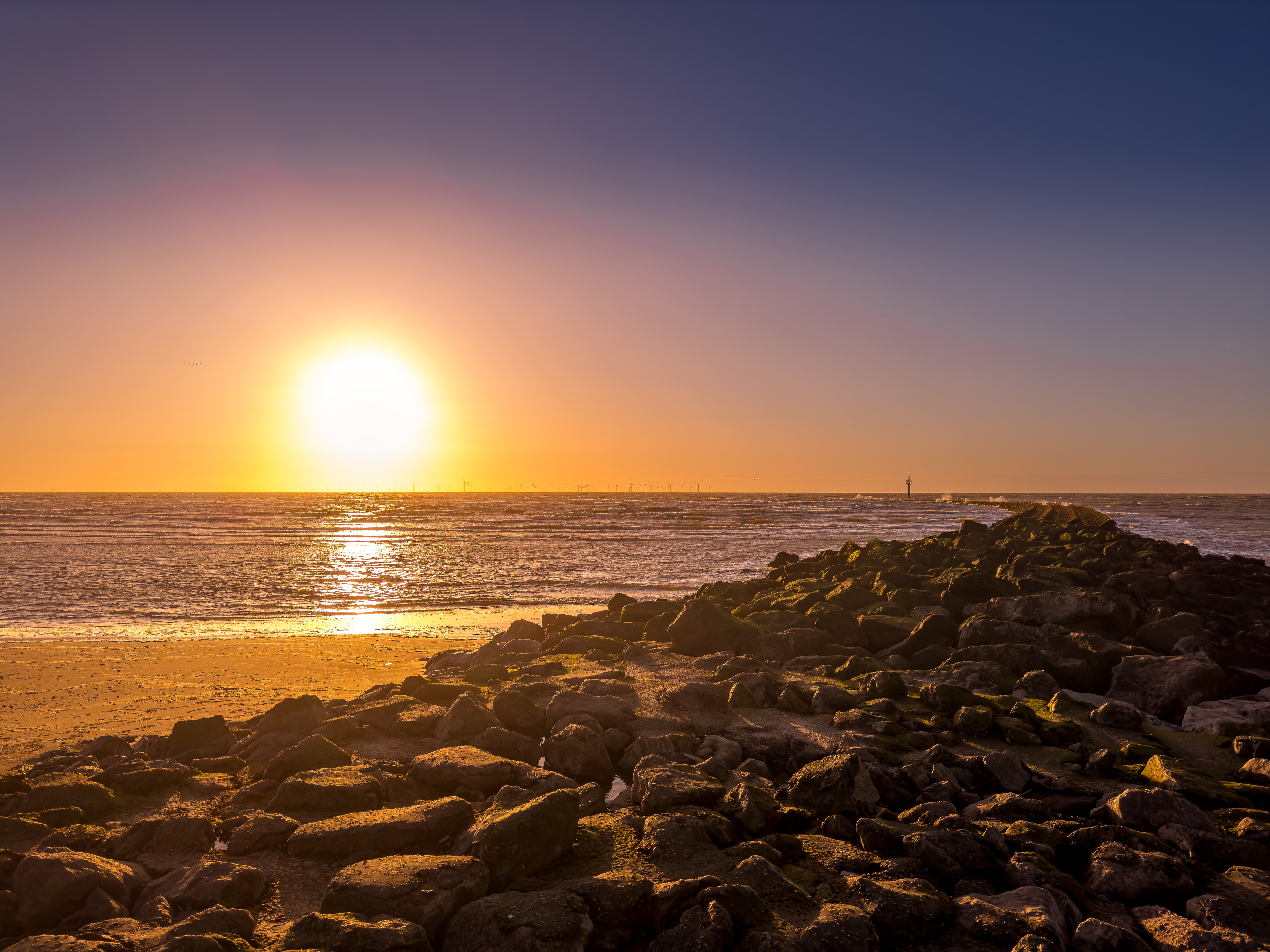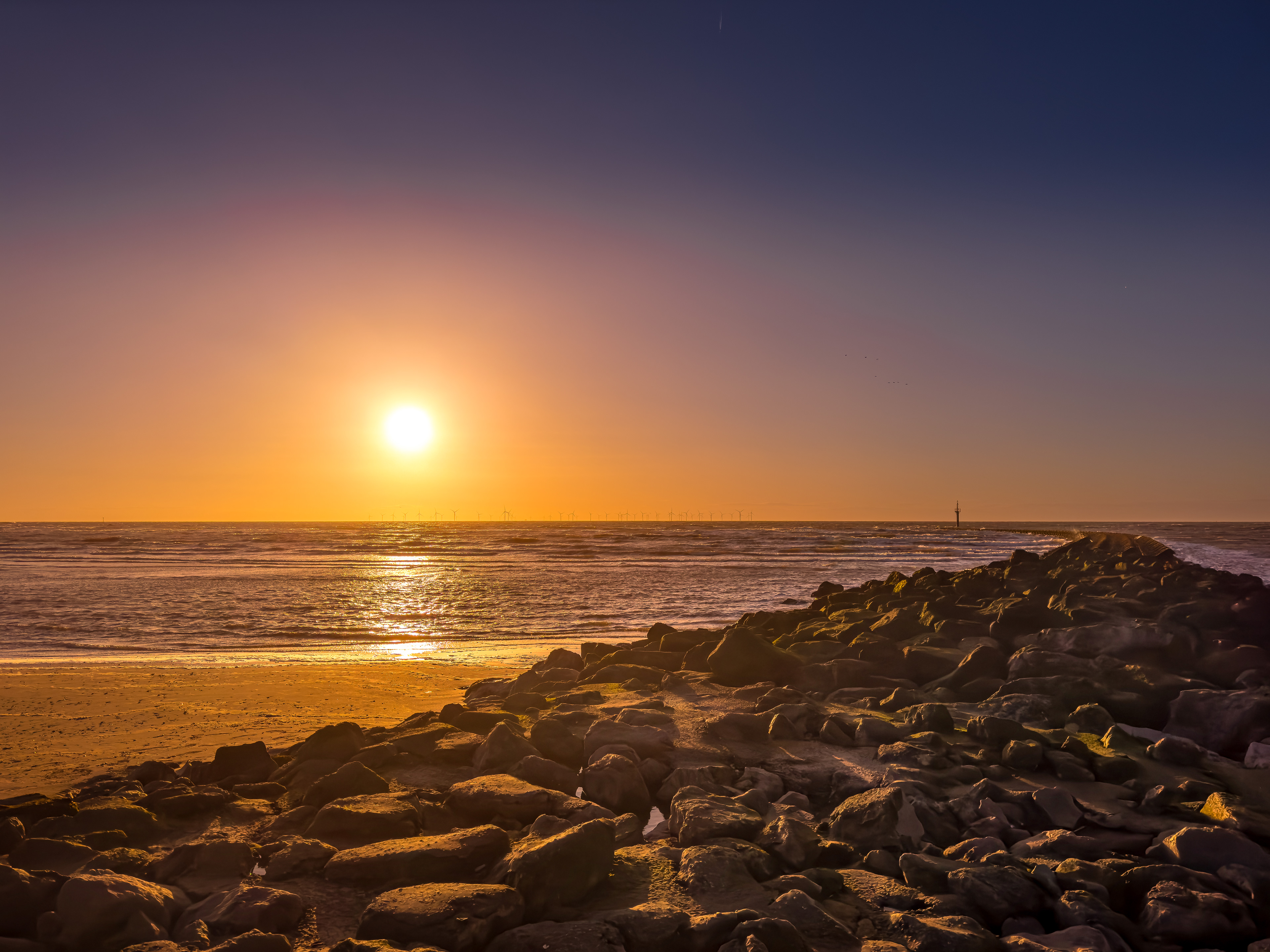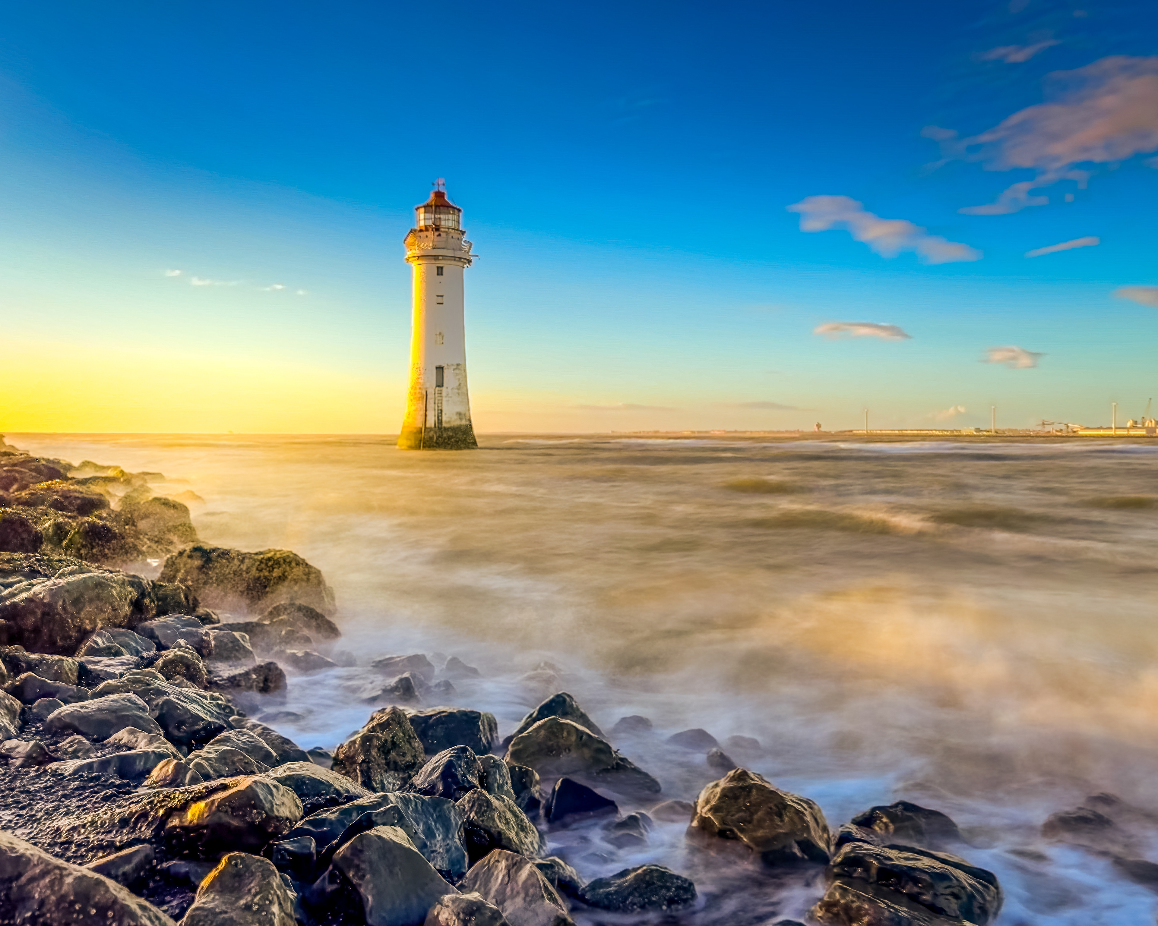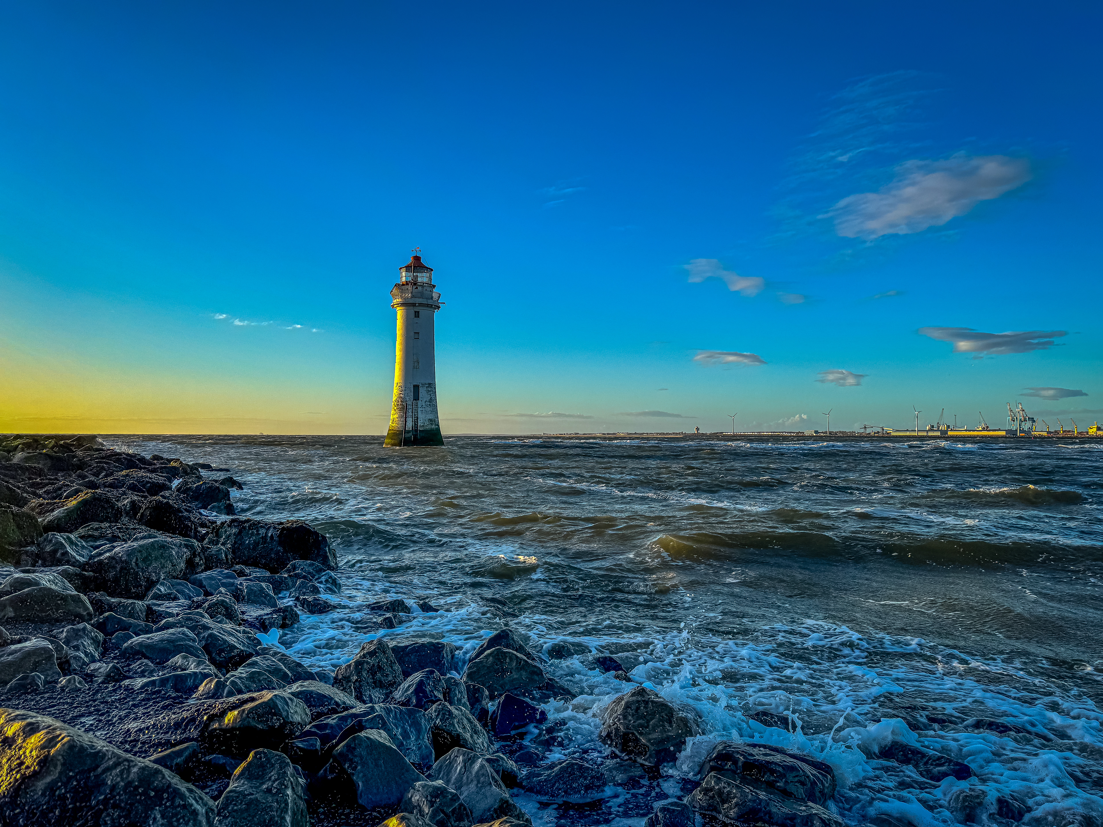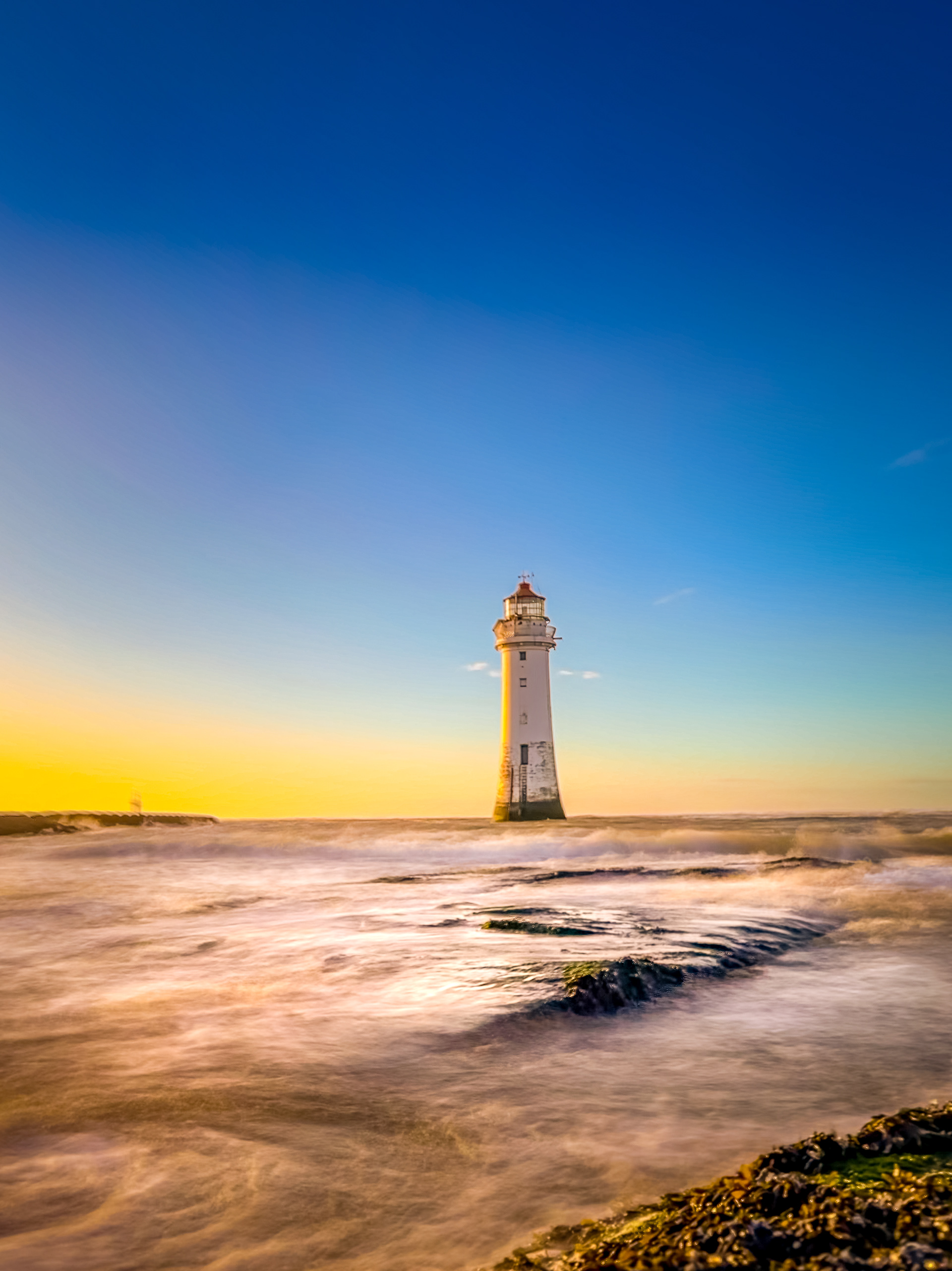 A walk to New Brighton Lighthouse, Wirral at Sunset.